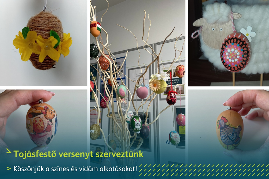 Húsvét alkalmából idén is megrendeztük a hagyományos tojásfestő versenyünket. Kollégáink és gyermekeik nagy lelkesedéssel csatlakoztak a kreatív megmérettetéshez. Rengeteg színes és vidám kifújt tojás készült, amelyekkel feldíszítettük az A portán elhelyezett tojásfánkat. A legtöbb lájkot kapott húsvéti dísz alkotóját Adient-es ajándékcsomaggal jutalmaztuk.
